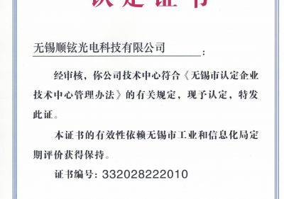 無錫市企業(yè)技術(shù)中心證書